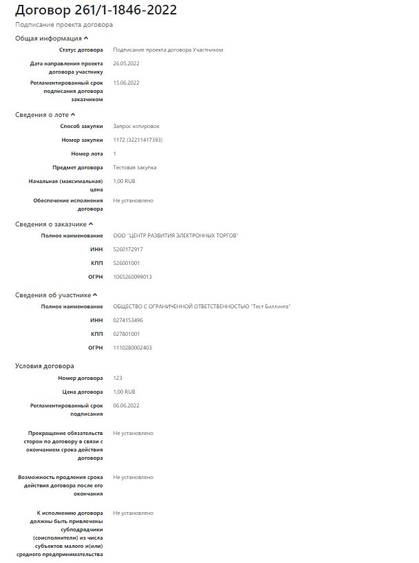 Заключение договора по результатам закупки