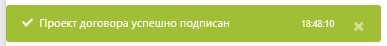 При нажатии кнопки «Подписать», договор подписывается Электронной цифровой подписью. При успешном подписании в левом нижнем углу вы увидите соответствующее уведомление.