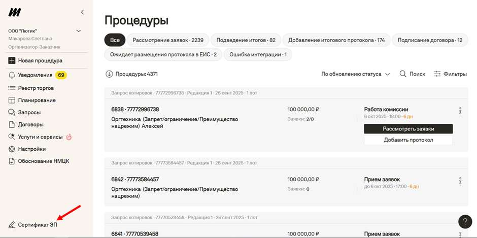 Замена электронной цифровой подписи (ЭЦП) на электронной торговой площадке (ЭТП) Торги 223