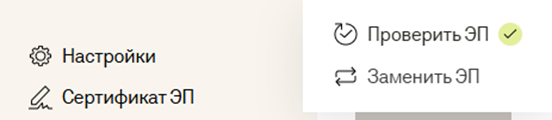 - В левой части меню нажать на раздел «Сертификат ЭП».