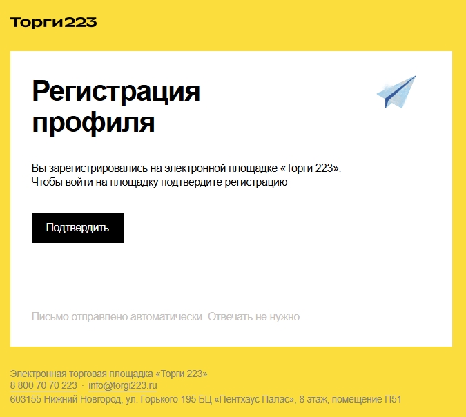 На указанный адрес будет отправлено письмо с указанием дальнейших действий. Для подтверждения электронной почты и продолжения аккредитации нажмите на кнопку «Подтвердить» в письме.