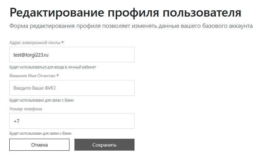 Для изменения данных пользователя нажмите «Редактировать». Откроется страница редактирования профиля пользователя: